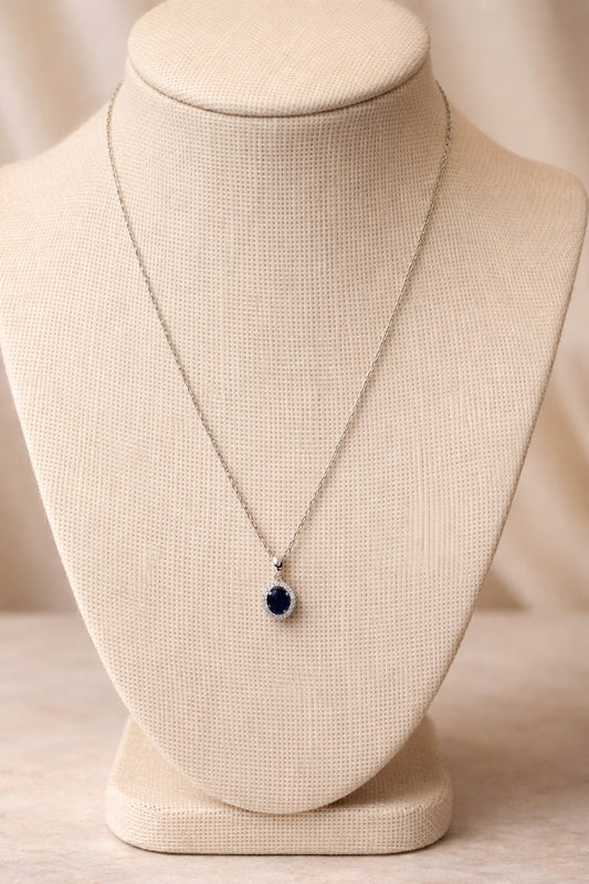 925 Sterling Silver Necklace With Navy Stone With 4A Zirconia